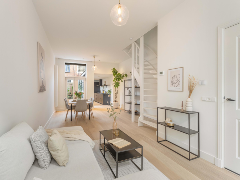 Zeer bijzonder ingedeelde 4-kamer hoekbovenwoning (104m2) met een zonnig balkon gelegen in de wijk Lombok.